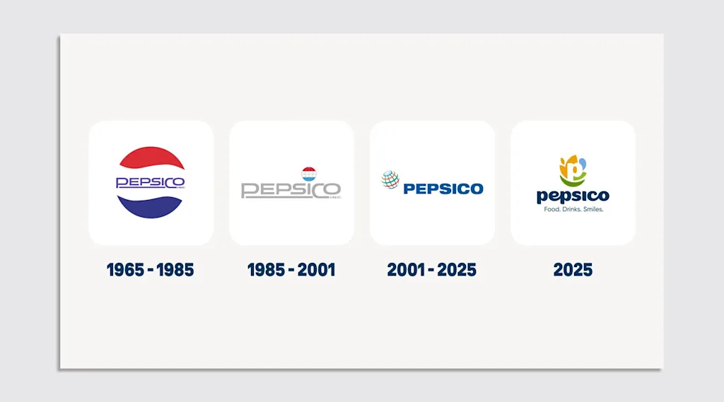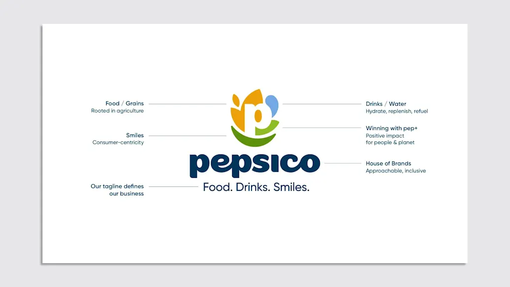 La nueva identidad de marca de PepsiCo, que incluye un nuevo logotipo, marca denominativa y eslogan, es el primer cambio de imagen de la compañía desde 2001. La empresa ha tenido tres identidades corporativas diferentes desde su creación en 1965, y todas ellas han tomado sus rasgos de diseño más destacados de Pepsi, la marca de refrescos que lo inició todo, hasta ahora.