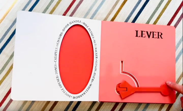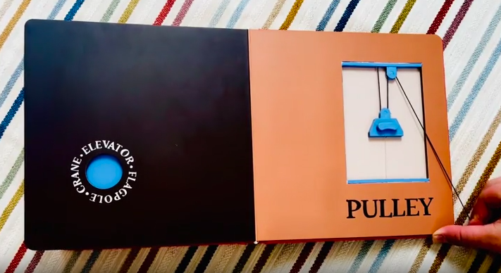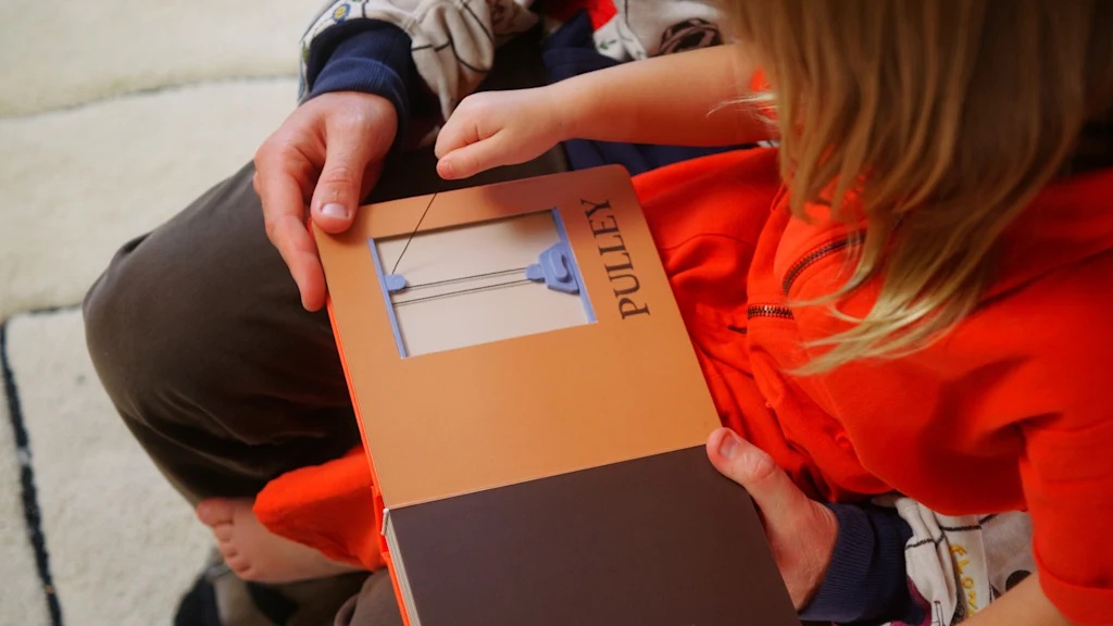 Pero no es un libro ilustrado cualquiera. En lugar de dibujos, presenta modelos funcionales con los que los niños pueden interactuar: hacer girar una rueda, deslizar una perilla por un plano inclinado o empujar una cuña que divide un bloque en dos. Tal vez no terminen con un título en física, pero sí con una curiosidad genuina por entender cómo funciona el mundo que los rodea.